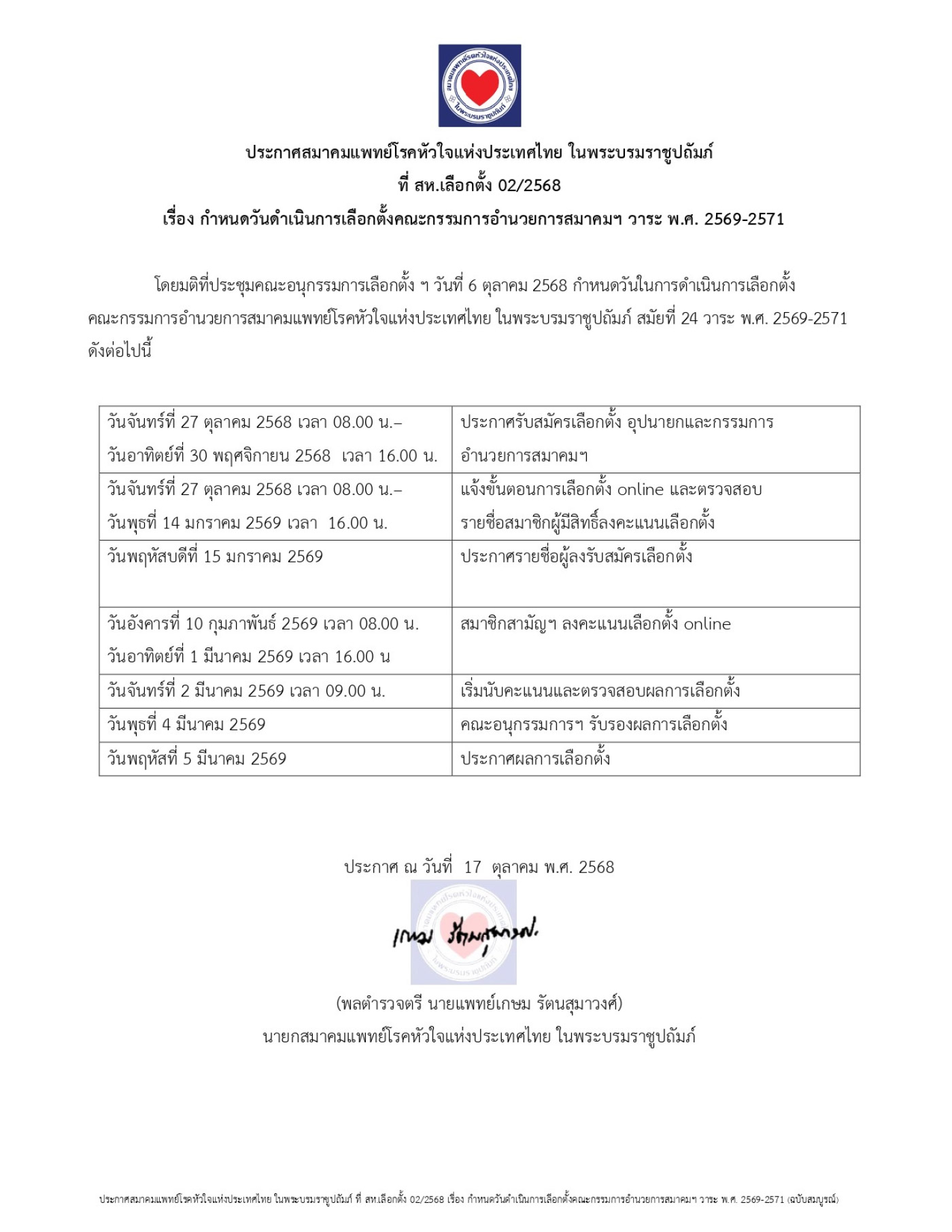 ระเบียบเฉพาะกิจสมาคมแพทย์โรคหัวใจแห่งประเทศไทย ในพระบรมราชูปถัมภ์ ว่าด้วยการเลือกตั้งคณะกรรมการอำนวยการ วาระ 2569-2571